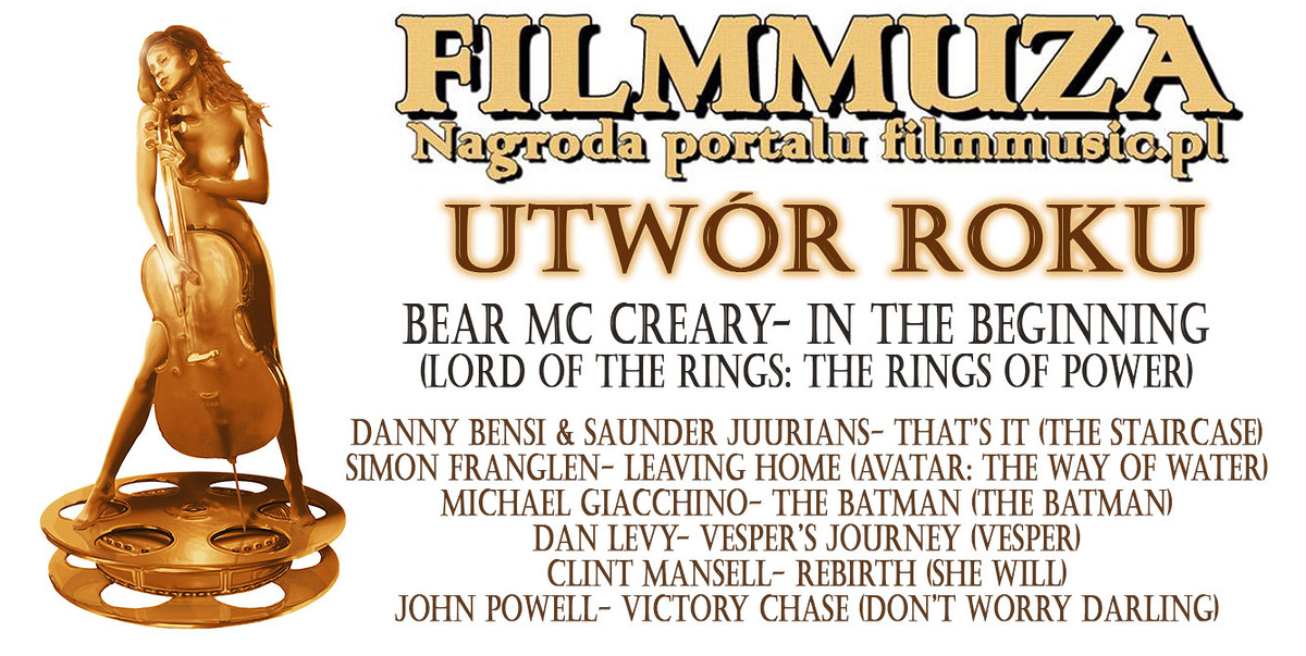 Rozdane zostały Złote Globy, Nagrody BAFTA, Oscary, oraz Orły, gdzie tym razem nominowano i nagrodzono żyjących kompozytorów. A więc zostały jeszcze Filmmuzy, czyli nagrody portalu Filmmusic.pl za rok 2022. Nie będziemy ukrywać ze wyłonienie tych kilku tytułów i nazwisk w kategoriach SCORE ROKU, KOMPOZYTOR ROKU, ODKRYCIE ROKU i UTWÓR ROKU, było dla nas nie lada wyzwaniem. I nie dlatego, że uważamy miniony rok w muzyce filmowej za nieudany, a wręcz przeciwnie. Kiedy przyszło nam wybrać nominacje, lista kandydatów zrobiła się dość długa i jakże przy tym różnorodna. Sami jeżeli chodzi o gusta muzyczne, jesteśmy dość różnorodną grupką. Co jest dobrą rzeczą, ale staje się sporym wyzwaniem podczas właśnie takich podsumowań. Dlatego po długich, nie raz kontrowersyjnych, ale zawsze merytorycznych dyskusjach, w wyniku demokratycznego głosowania, w końcu udało się naszej redakcji wyłonić nominacje. I wtedy wybór zwycięzców okazał się nie być aż tak trudny, jak to często w przeszłości bywało. Pewnie też dlatego, że w przypadku tej edycji możemy mówić o jednym wielkim zwycięzcy, który wygrał w aż trzech (!) kategoriach – SCORE ROKU, KOMPOZYTOR ROKU, UTWÓR ROKU. To aby dalej nie przedłużać, zapraszamy do zapoznania się z wynikami naszego plebiscytu.