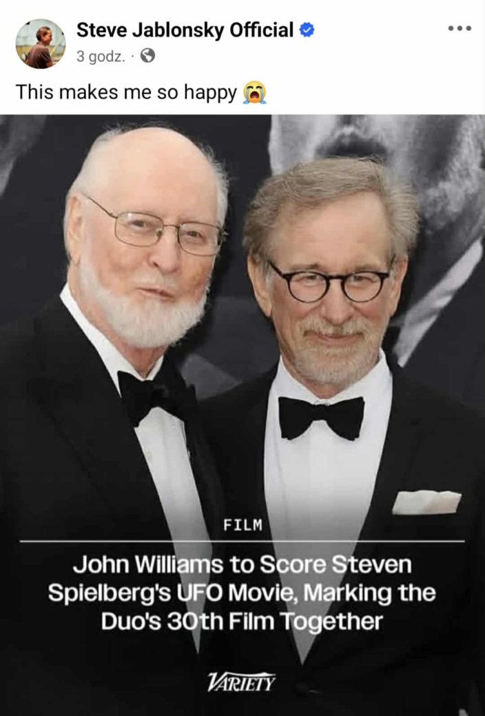 „John Williams, który obecnie przebywa w Los Angeles i robi to, co zawsze, […] pracuje ze Stevenem Spielbergiem nad kolejnym filmem. I to jest coś, z czego możemy się cieszyć.”